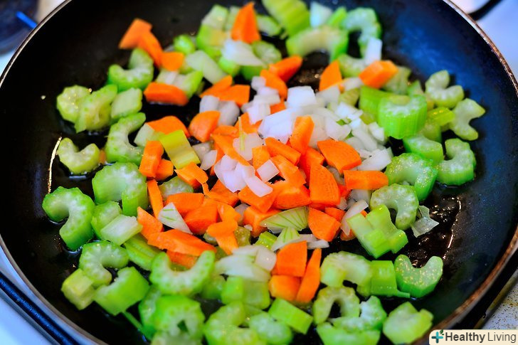 Обсмажуйте цибулю, селеру, кріп і моркву протягом 10 хвилин, періодично помішуючи, поки вони не стануть золотистого кольору.