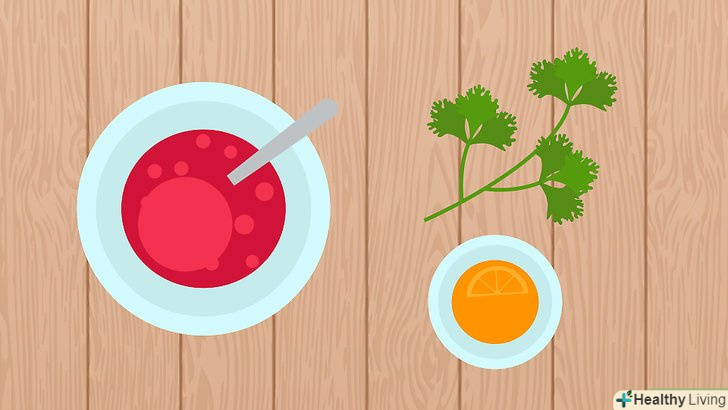 Додайте коріандр і цитрусове пюре.коріандр і цитрус скоріше за все вже були в вашому початковому рецепті, тому додаткова порція зробить сальсу не такою гострою, і при цьому не доведеться вносити зміни в рецепт. Візьміть кілька листочків або гілочок коріандру, крупно їх наріжте і змішайте з соком лайма або апельсина.[3]- Додавайте по чайній ложці за один раз, поки не отримаєте бажаний результат. Якщо у вас залишилися інгредієнти, їх можна використовувати для приготування тако, сендвічів, яєць і смажених страв.