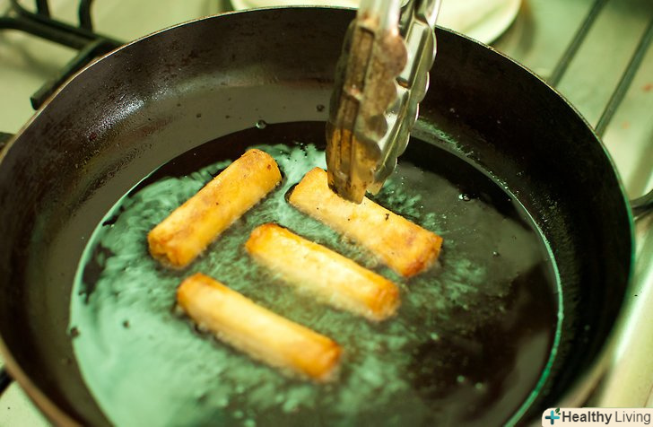 Візьміть важку сковороду і заповніть її на 1 см рослинним маслом.нагрівайте масло близько 5 хвилин. Акуратно помістіть роли в сковороду, опускаючи їх по бічній стороні посуду. Завдяки цьому масло не буде розбризкуватися.