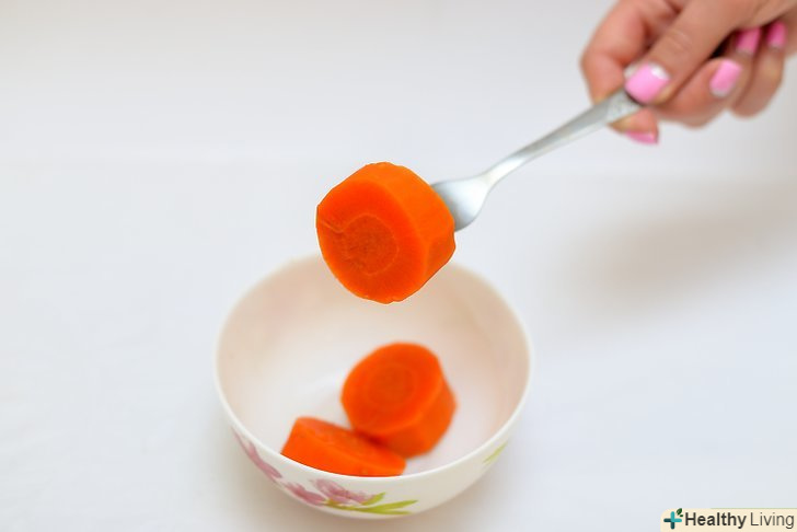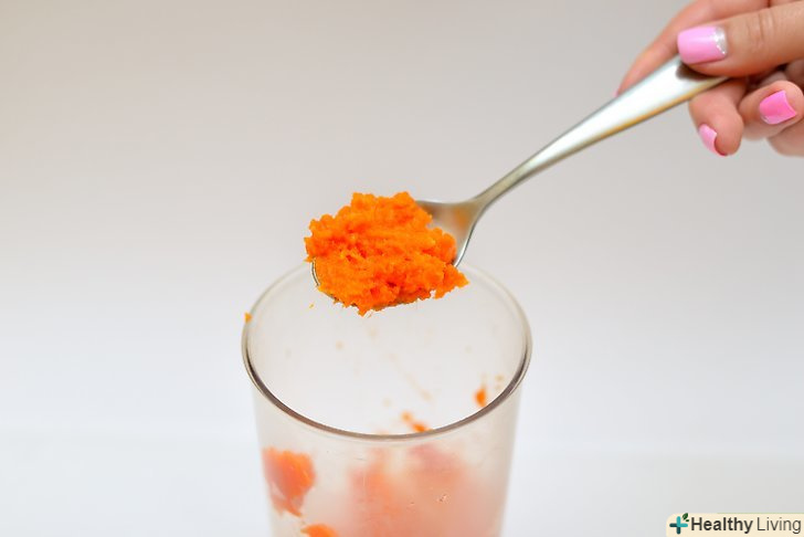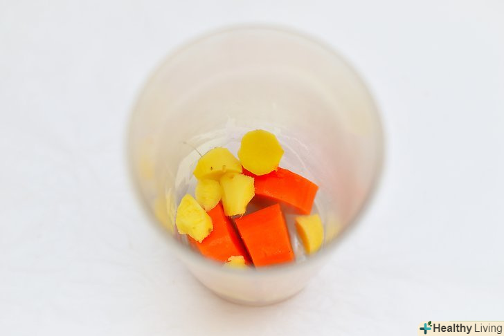 Перемеліть відварну моркву і імбир з медом.обережно перекладіть відварну моркву і імбир в кухонний комбайн. Додайте 2 столові ложки меду і половину свіжого стебла свіжого імбиру, який ви раніше відклали. Перемеліть масу до однорідного стану.[13]- Перш ніж додавати, не забудьте очистити і нарізати свіжий імбир.