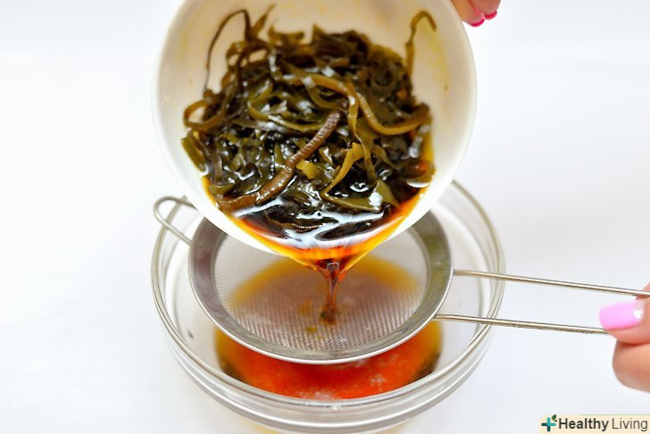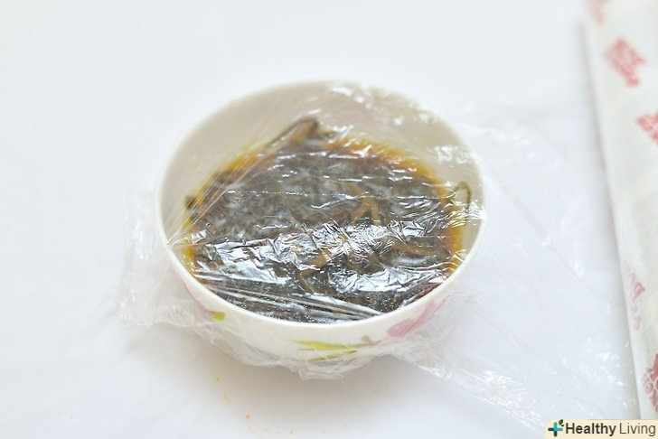Накрийте і поставте соус в холодильник.накрийте соус кришкою і поставте в холодильник на 24 години. Це дозволить повністю розкрити смакові якості і зробить соус більш насиченим.[16]- Необхідно замочити ламінарію (морську капусту) в соусі, щоб вона надала заправці характерний присмак, поки ТА буде стояти в холодильнику.