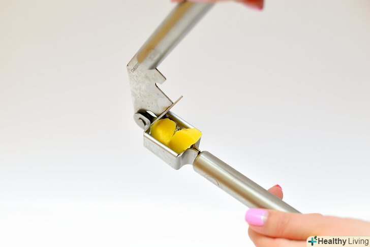 Відіжміть свіжий імбир.розріжте свіжий імбир на кілька невеликих шматочків. Пропустіть їх через крихітні отвори чистої Часничниці, щоб відокремити сік від м'якоті. Перекладіть м'якоть в невелику мисочку і відміряйте необхідну кількість.[18]- Сік імбиру можна вилити або поставити на зберігання для подальшого використання.