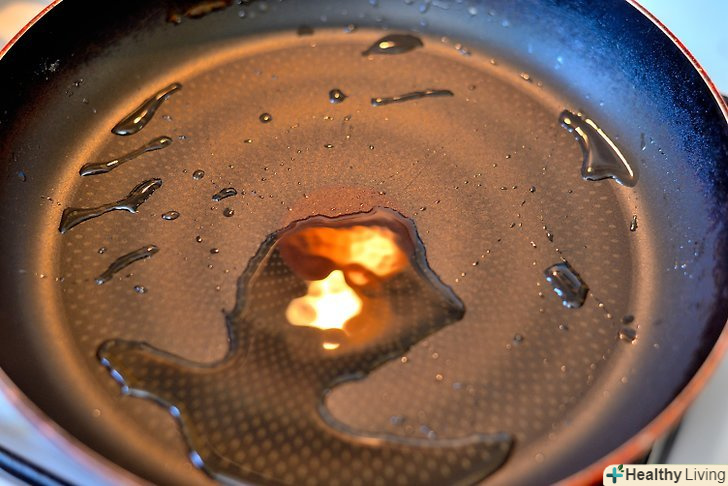 Нагрійте в сотейнику масло.поставте невелику каструлю на плиту і налийте в неї 1 чайну ложку масла кунжутного насіння і 2 чайні ложки оливкової олії. Увімкніть конфорку на середній вогонь, щоб нагріти масло.[2]- Кунжутне масло має багатий смак і густу консистенцію, а оливкова допомагає його збалансувати.