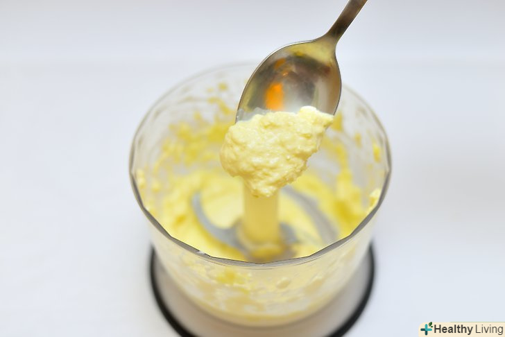 Збийте і спробуйте соус.накрийте блендер або комбайн кришкою і включіть його. Збивайте м'якоть імбиру з майонезом до тих пір, поки суміш не придбає рівномірну консистенцію без шматочків. Спробуйте соус і доведіть до розуму його смак відповідно до власних уподобань.[20]- Щоб зробити соус більш ніжним і надати йому вершковий смак, необхідно додати в нього чайну ложку майонезу. Щоб зробити соус більш пікантним, доповніть його чайною ложкою імбирної м'якоті. Повторно збийте і спробуйте отриману суміш.