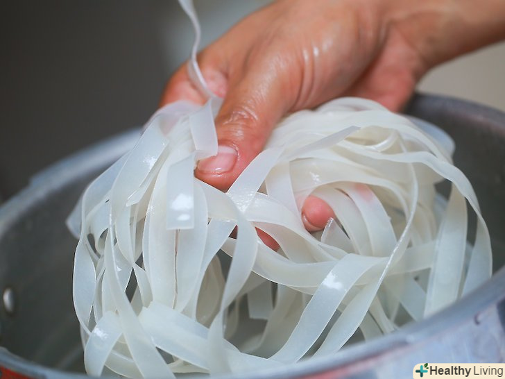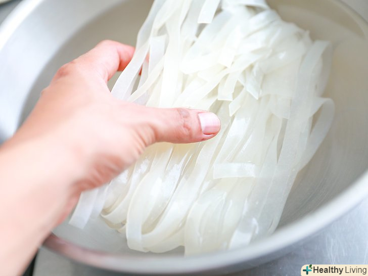 Розділіть локшину.Руками розділіть локшину на смужки. При необхідності наріжте локшину на 1.25 см.шматочки.- Зверніть увагу, що локшина може зламатися на більш короткі шматки, коли ви її поділяєте.
