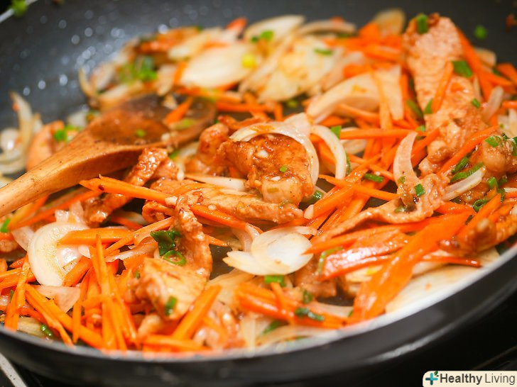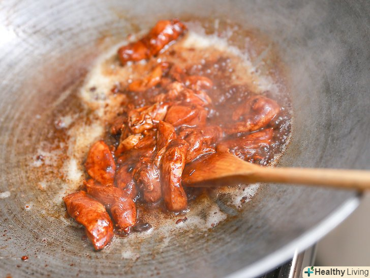 Нагрійте сковороду.поставте велику неглибоку сковороду або вок на плиту і нагрійте на високому вогні. Після того, як сковорода нагріється, додайте 1 столову ложку (15 мл.) рослинного масла.- Сковорода досить гаряча, коли ви капнете на неї краплю води, і вона випарується за 1-2 секунди.