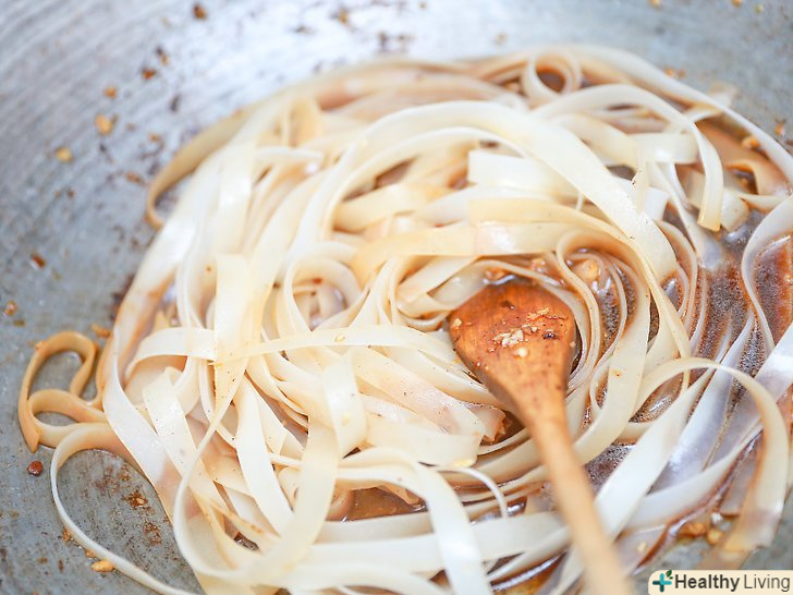 Приготуйте локшину і бобові паростки.розігрійте сковороду на сильному вогні, перш ніж додати ще 2 столові ложки (30 мл) масла. Додайте локшину в один шар і смажте, не перемішуючи, протягом 2-х хвилин або, поки не з'явиться скоринка. Додайте бобові паростки і готуйте, постійно помішуючи, протягом ще 1 хвилини або, поки паростки не стануть м'якими.- Зверніть увагу, що трохи локшини може прилипнути до сковороди за цей час.