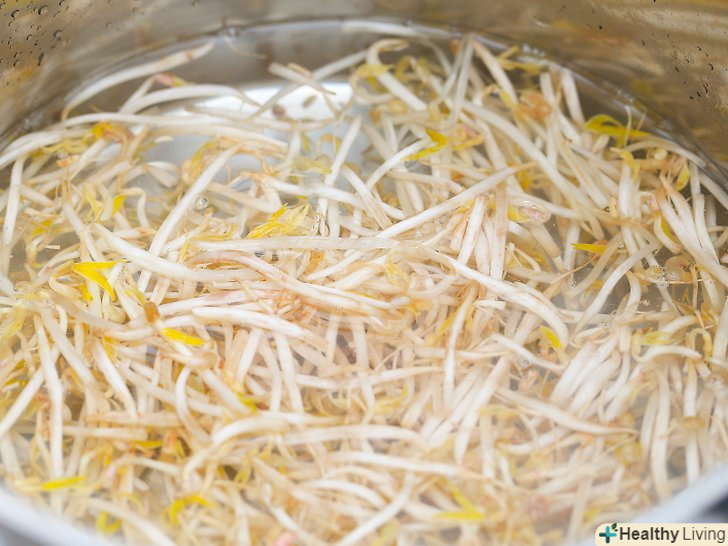 Додайте бобові паростки.покладіть бобові паростки на сковороду і обережно помішуйте, поки вони не нагріються.- На цьому етапі приберіть все зі сковороди.
