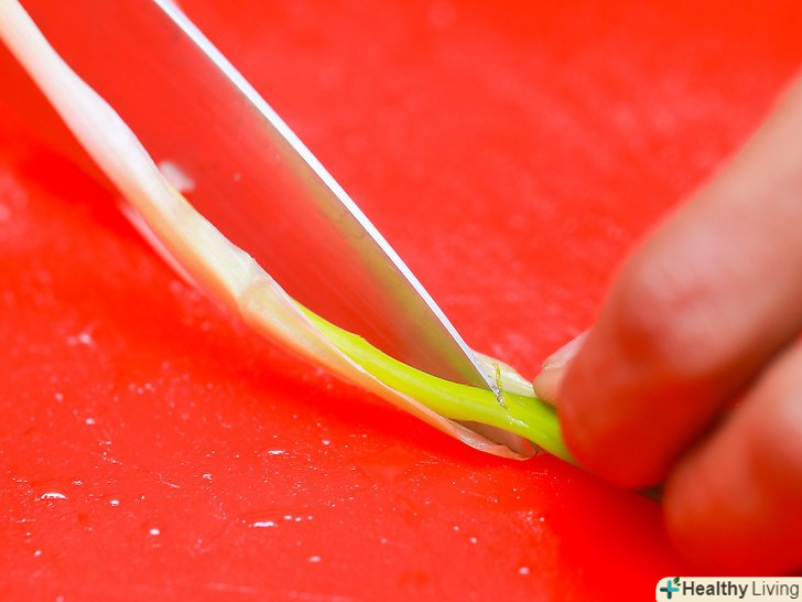 Розділіть на частини зелену цибулю. Відріжте білі частини від зеленого лука. Роздушіть білі частини плоскою стороною ножа, і покладіть їх в миску.- Ви повинні також додати імбир і часник в ту ж миску.