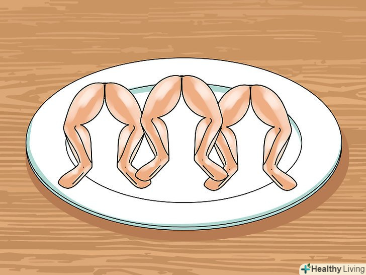 Відріжте лапки жаб по суглобу.використовуйте кухонні ножиці, щоб розділити кожну жаб'ячу лапку навпіл в колінному суглобі.- Якщо у вас немає кухонних ножиць, замість них можна використовувати гострий ніж. Тільки будьте обережні, щоб не порізати пальці, намагаючись відрізати суглоб.