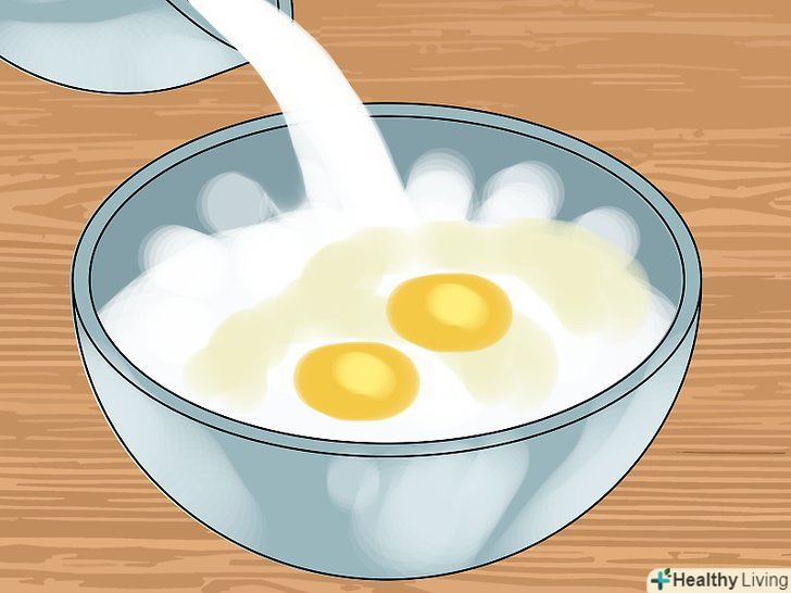 З'єднайте яйця з молоком.збийте разом в невеликій мисці яйця і молоко, поки повністю не змішаються.- Суміш повинна бути однорідного блідо-жовтого кольору без будь-яких відтінків або смуг білого або темно-жовтого кольору.
