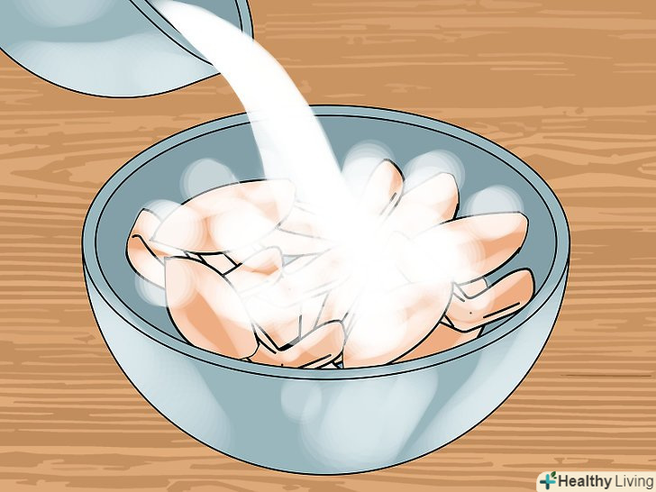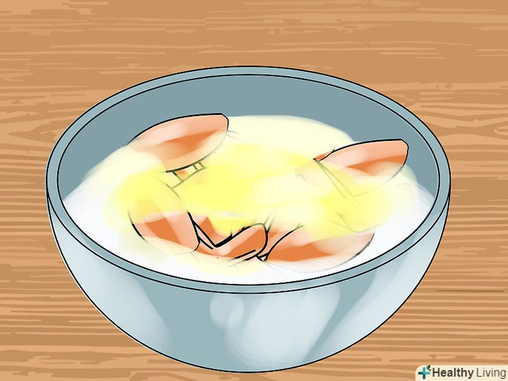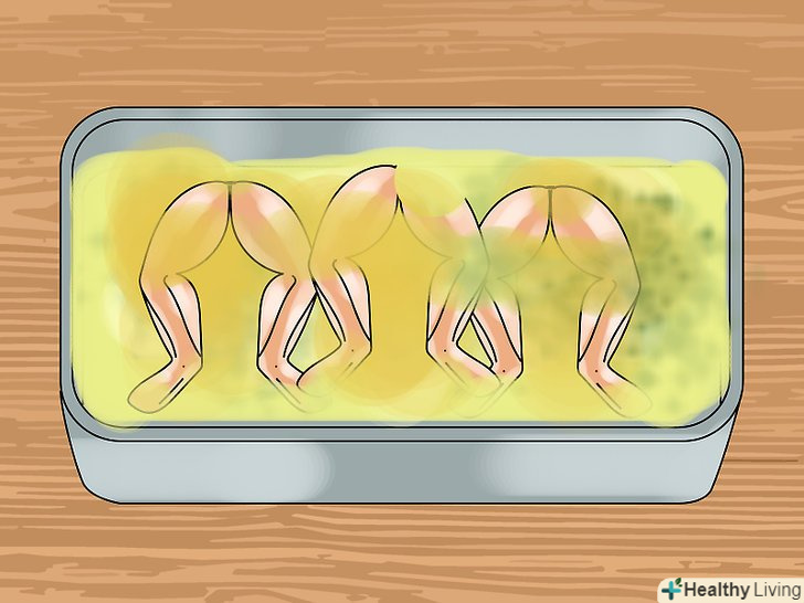 Замаринуйте лапки в молоці.покладіть жаб'ячі лапки в миску і залийте молоком доверху. Накрийте миску поліетиленовою плівкою і поставте в холодильник на 30 хвилин.- Не маринуйте жаб'ячі лапки при кімнатній температурі. Молоко може зіпсуватися, і температура в приміщенні ідеально підходить для розвитку бактерій в сирому м'ясі.
