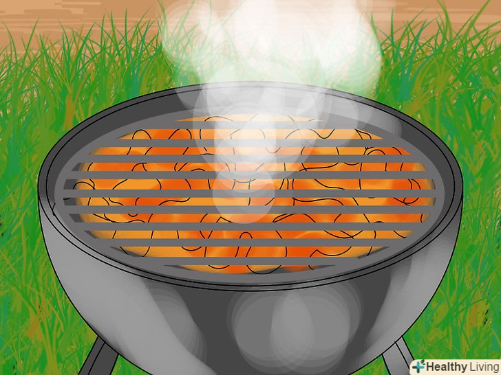 - При використанні гриля на вугіллі, покладіть два шари або так, щоб брикети деревного вугілля були розташовані в нижній частині гриля. Запаліть, і нехай полум'я горить, поки не залишиться шар попелу на деревному вугіллі.