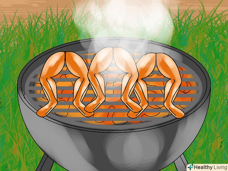 Готуйте жаб'ячі лапки на грилі 6-7 хвилин.просушіть жаб'ячі лапки і перекладіть їх на гарячий гриль. Накрийте гриль і готуйте протягом 3 хвилин. Переверніть лапки і знову закрийте гриль, готуйте ще 3-4 хвилини.- Коли м'ясо приготувалося, воно не повинно бути рожевого кольору. Крім того, м'ясо повинно легко відділятися від кісток.