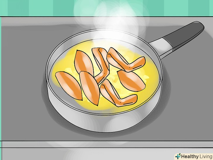 Нагрійте 6 ст. л. (180 мл) вершкового масла у великій сковороді. Нагрійте на сильному вогні, так щоб воно почало шипіти.- Масло повинно почати шипіти, але не дозволяйте йому диміти. Коли масло стає досить гарячим, щоб почати диміти, воно починає руйнуватися, і це може вплинути на смак кінцевого блюда.