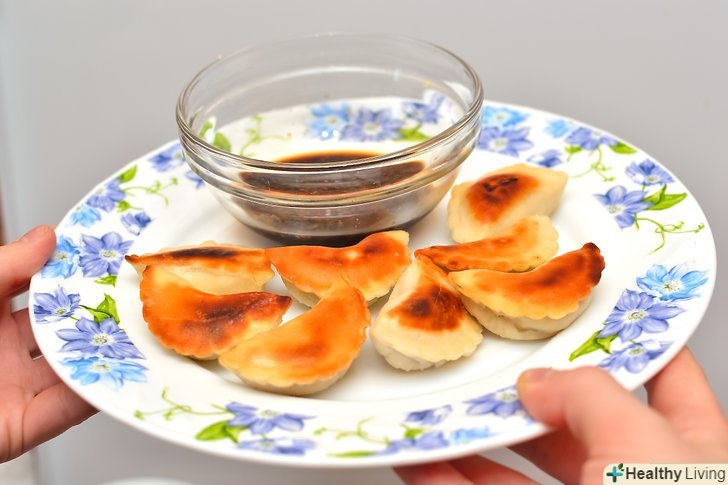 Приготуйте соус для макання.традиційно, цзяоцзи подаються зі смачним соусом для макання. Соус зазвичай готується з суміші 2/3 частин соєвого соусу, 1/3 частини китайського рисового оцту, тертого або нарізаного маринованого імбиру і кунжутного масла, часто з нарізаною зеленою цибулею. Якщо вам подобається гострий соус, то можете для смаку додати гостру китайську пасту Чилі.