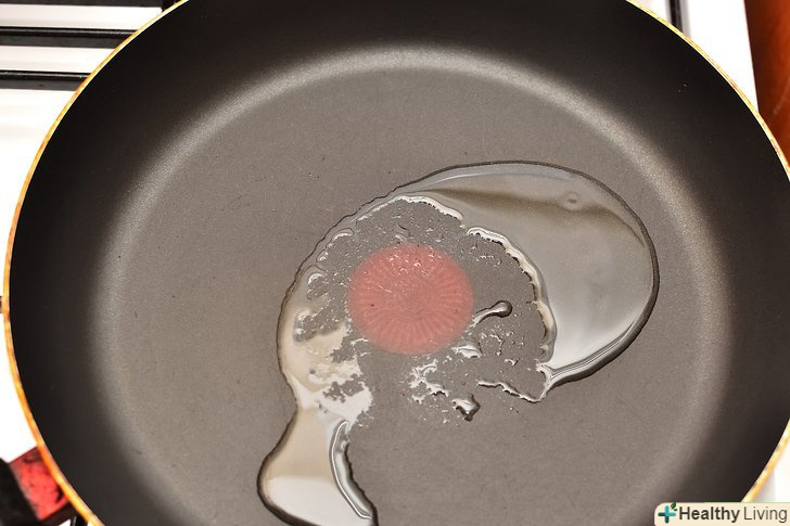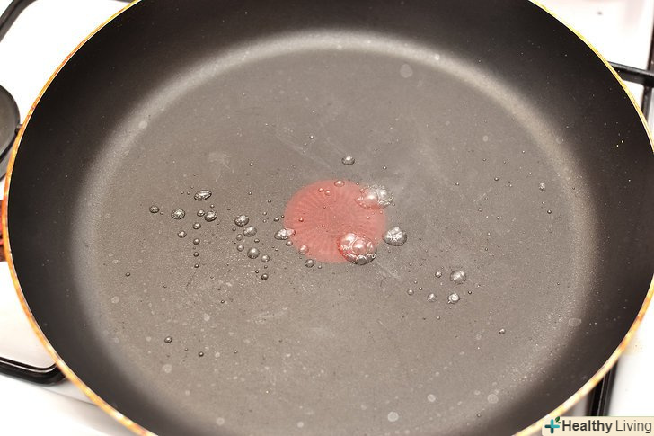 Розігрійте вок-сковороду або сковороду з антипригарним покриттям на середньому вогні.переконайтеся, що сковорода дуже гаряча. Для цього капніть на неї трохи води. Якщо вода негайно випаровується з гучним шипінням, то ваша сковорода готова.