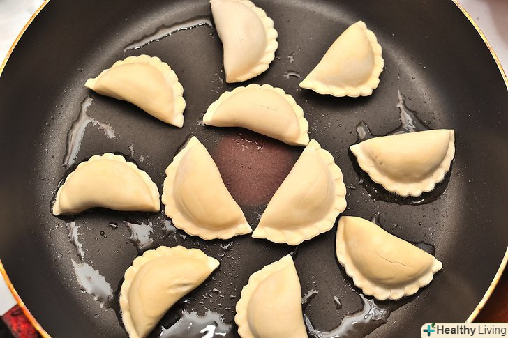 Помістіть цзяоцзи на сковороду. ви повинні переконатися, що достатньо місця між цзяоцзи, і що вони не перекриваються один одним. Якщо вони перекриються один одним під час смаження, їх буде практично неможливо розділити і не порвати (в результаті чого вся смачна начинка вивалиться).