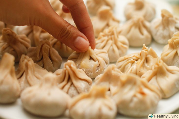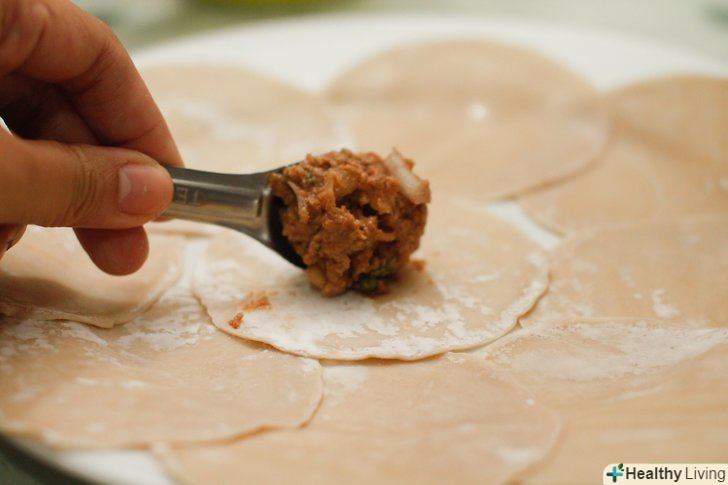 Покладіть 1 столову ложку фаршу в тісто для сіомаїв.