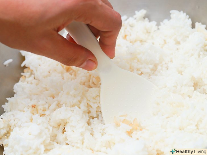 Підготуйте рис.дістаньте рис з холодильника, коли будете готові його смажити. Додайте в миску 1 столову ложку масла. Ретельно змішайте масло і рис руками або ложкою. Киньте рис в друшляк і злийте до того, як приступите до наступного етапу.