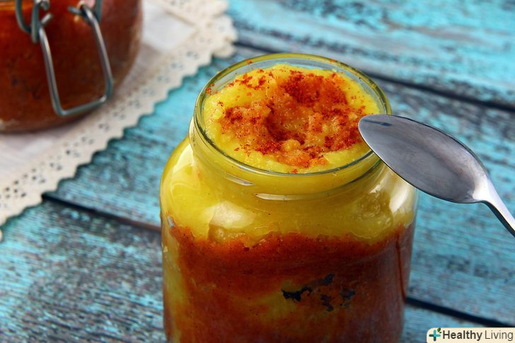 Візьміть кілька маленьких банок.вони необхідні для подачі мангонади. На одну банку припадає 2-3 столових ложки соусу chamoy. Додайте заправку в кожну посудину.[10]- Розподіліть його по внутрішній поверхні банки за допомогою ножа або задньої сторони ложки.
