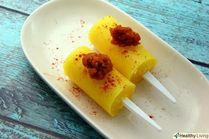 Подайте це частування у вигляді фруктового морозива.щоб зробити морозиво, розлийте мангову суміш (з 1 кроку) по маленьких склянках або формам для ескімо.[16]- Вставте в кожен стаканчик паличку для морозива.