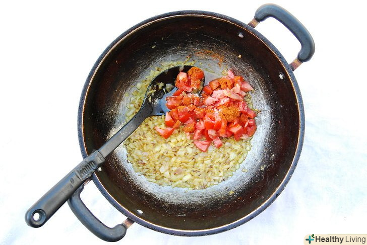 Додайте помідори, сіль і порошок червоного перцю чилі.