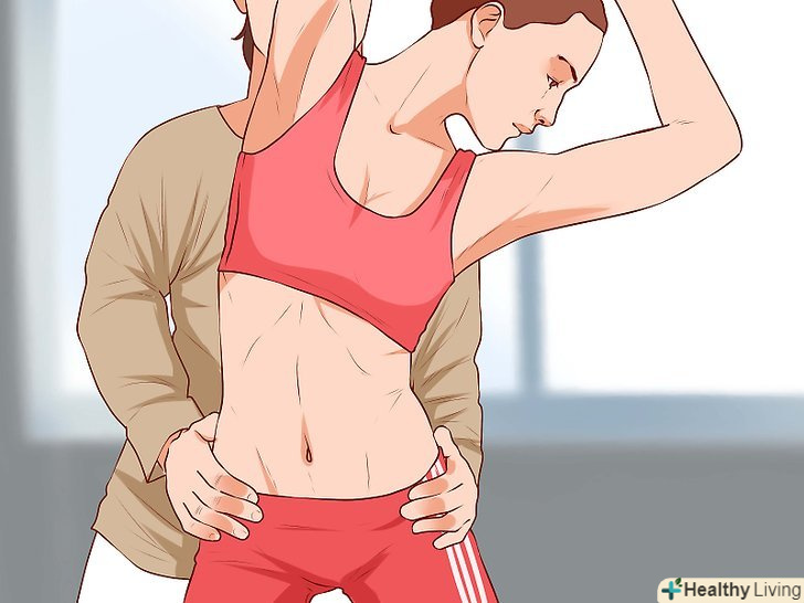 Попросіть друга допомогти вам розтягнути згиначі стегна для збільшення амплітуди руху.Встаньте рівно, підніміть одну ногу якомога вище і відведіть її в сторону, тримаючи при цьому стегна під прямим кутом. Попросіть друга потримати підняту ногу під литковими м'язами. Спробуйте прибрати ногу з рук одного. Тримайте ногу без підтримки протягом 2-3 секунд. Поверніть ногу на руки друга і повторіть цю вправу 6-8 разів, перш ніж поміняти ногу.[11]- Після 6-8 повторень повторіть те ж саме, але вже з іншою ногою.