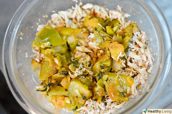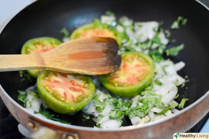 Приготуйте соус.розігрійте столову ложку сала або масла в неглибокій сковороді. Коли жир стане гарячим, додайте перець, часник, цибулю, коріандр і томатілло. Продовжуйте готувати до тих пір, поки овочі не размельчатся, і всі інгредієнти не змішаються в однорідну масу.- Спробуйте соус і додайте сіль і перець за смаком.