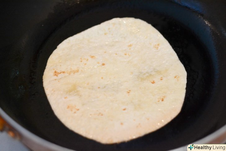 Зробіть коржі м'якими.нагрійте неглибоку сковороду з маслом до середньої температури. Коли сковорода нагріється, покладіть на неї тортилью на 30 секунд. Переверніть її і залиште ще на 30 секунд. Потім помістіть тортилью на тарілку з паперовим рушником. Повторіть ці дії з іншими тортильями.- Якщо у вас велика сковорода, спробуйте розігрівати по кілька коржів за раз.
