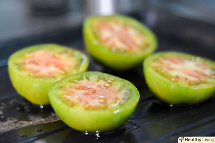 Приготуйте томатілли.нагрійте духовку до 200 градусів. Очистіть томати від шкірки. Промийте їх у холодній воді і потрясіть, щоб просушити. Розріжте кожен томат навпіл. Розкладіть їх на деку і полийте оливковою олією. Запікайте томати, поки вони не випустять всі соки, близько 5-7 хвилин. Дістаньте їх з духовки.