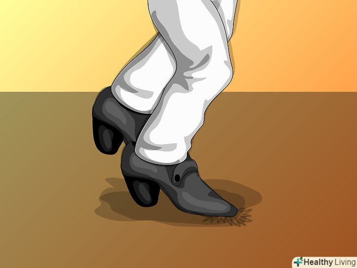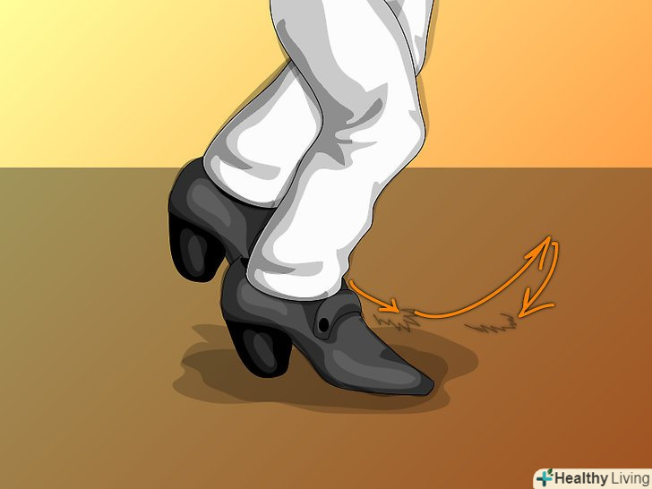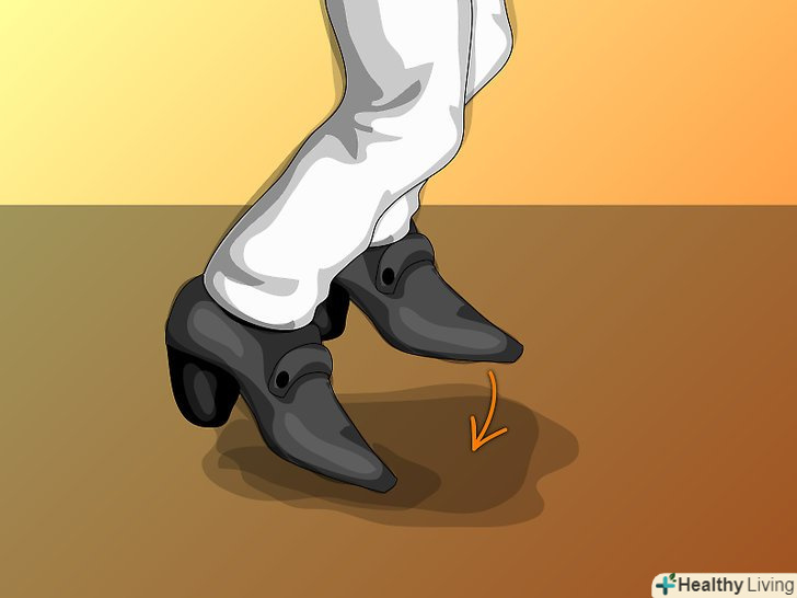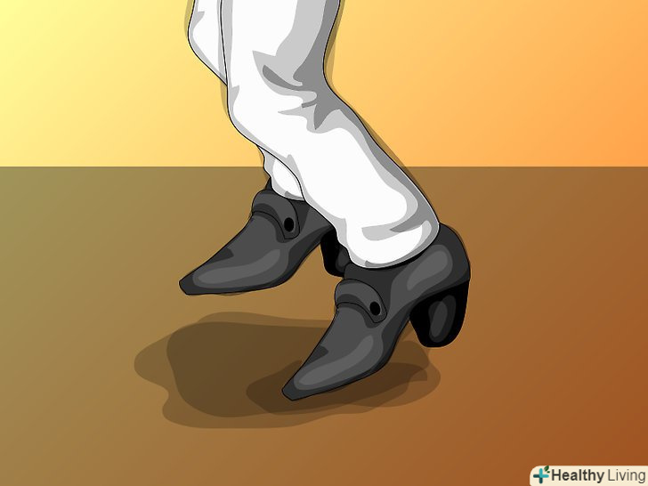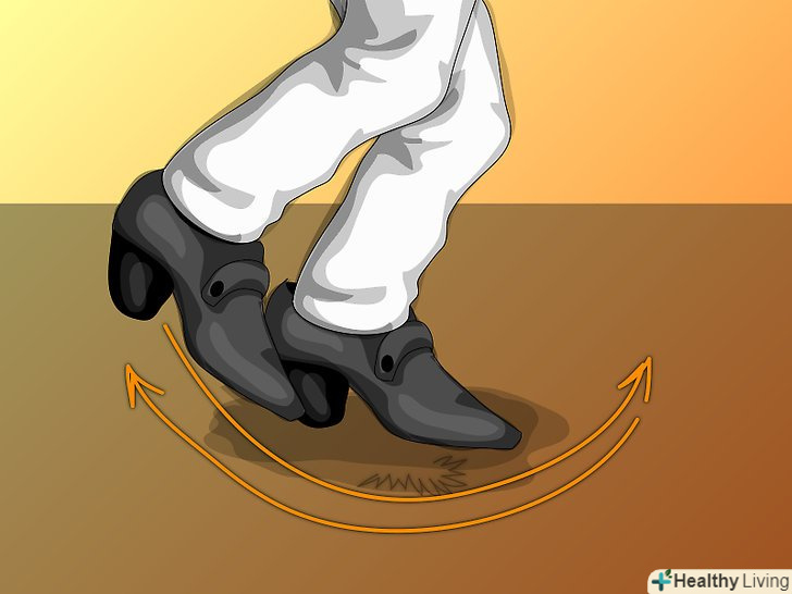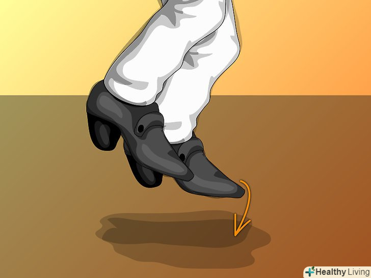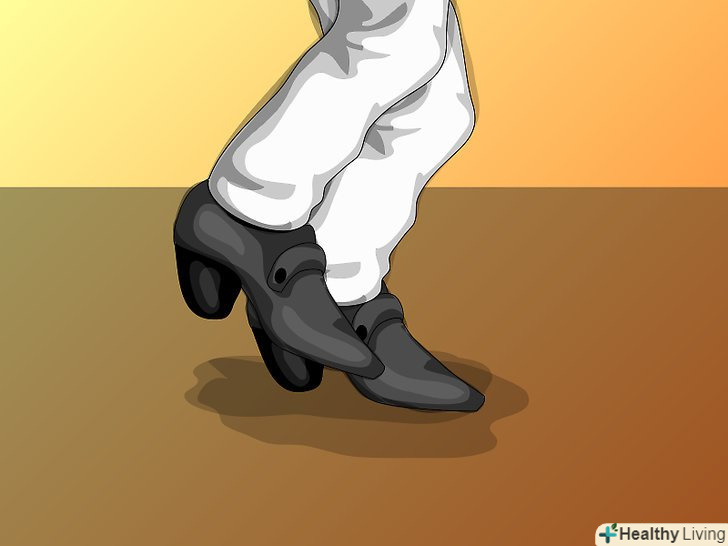- Cramp Roll-переміщайте вагу на ноги в наступному порядку: правий носок, лівий носок, правий каблук, лівий каблук. Як тільки ви торкнулися частиною ноги землю, не рухайте її, поки не закінчите рух. Починайте повільно робити рухи, але ви можете прискоритися, коли придбаєте достатньо навичок. Цей крок повинен робити чотири Звуки.