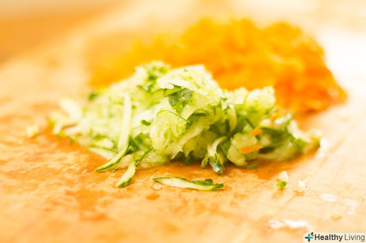 Потріть моркву і огірки.ви можете вибрати форму і розмір на свій розсуд.