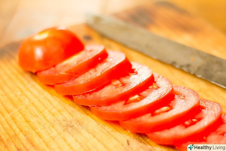 Поріжте помідори.ви можете порізати помідори кільцями або використовувати звичну для себе нарізку.