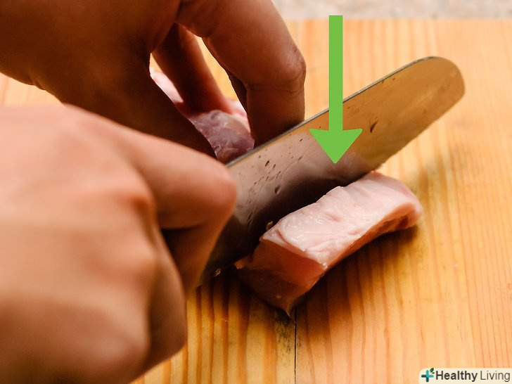 Наріжте свинячу лопатку.гострим ножем розріжте свинину на смужки приблизно 5 см в довжину і 2,5 см в ширину. Не видаляйте жир, в процесі готування він розтане і зробить м'ясо дуже ніжним.- Якщо ви хочете приготувати шматок м'яса цілком, пропустіть цей крок і дотримуйтесь подальших інструкцій, використовуючи цілий шматок свинини.