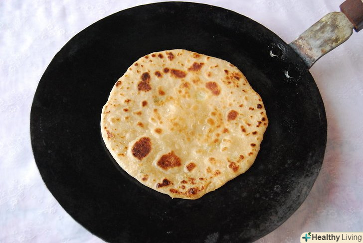 - Не перегрівайте сковороду, інакше паратха підгорить, залишившись сирої всередині. Ставте сковороду на середній вогонь і готуйте корж повільно.