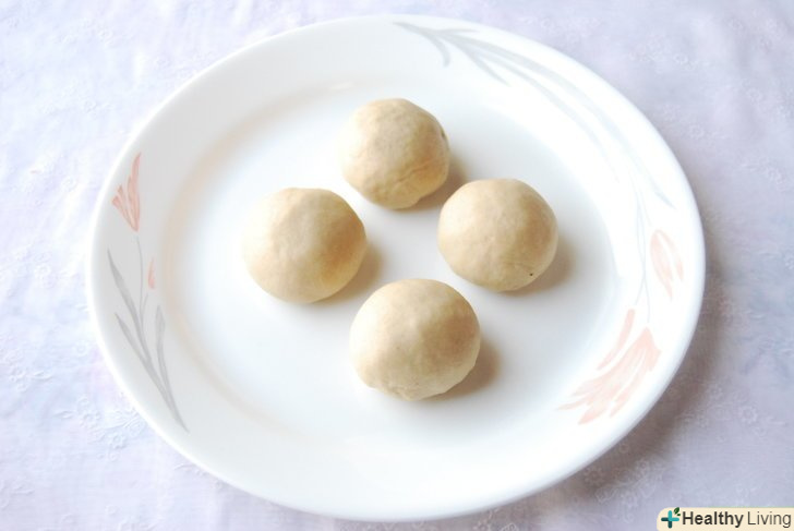 Присипте кухонну поверхню борошном.скачайте тісто в кульки для коржів.