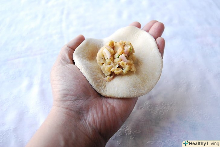 Візьміть цей гурток в ліву руку і покладіть в центр трохи начинки.