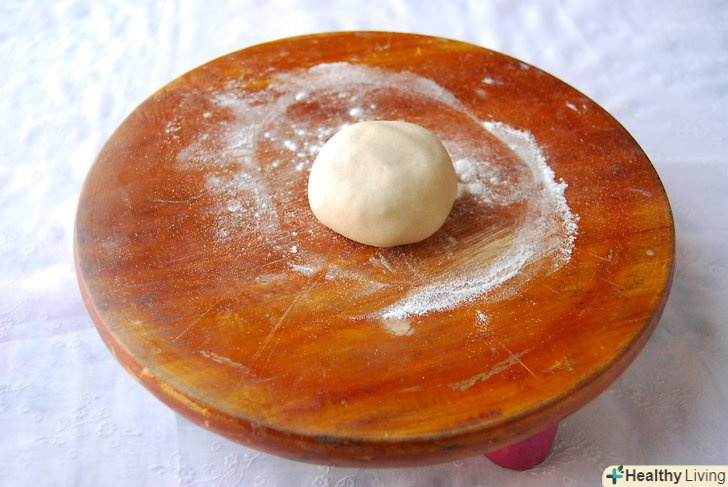 Замісіть тісто.змішайте борошно з 1/2 столової ложки рослинної олії і достатньою кількістю води і замісіть тісто. Тісто має вийти трохи більш щільним, ніж тісто для піци.