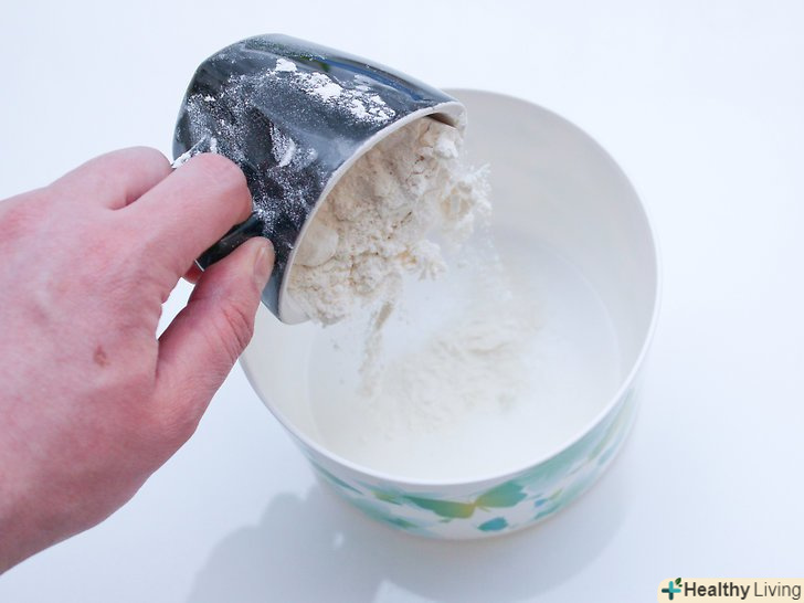 Розведіть дріжджі в теплій воді.налийте теплу воду у велику миску і посипте дріжджі зверху. Дайте суміші постояти 10 хвилин, або поки суміш не почне трохи пінитися.- Якщо суміш не стане пінистою, це може означати, що дріжджі загинули. Мертві дріжджі не зможуть забезпечити підняття тесту, так що ви повинні викинути їх і почати все заново з новим пакетом.