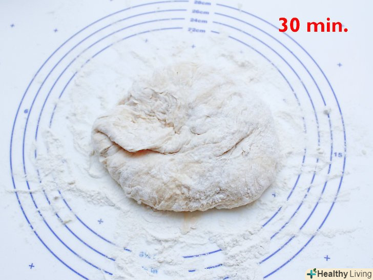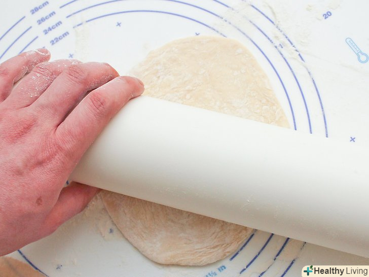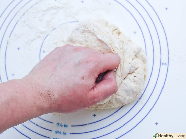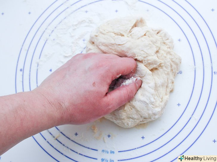 Замісіть тісто.злегка посипте борошном чисту кухонну стільницю або робочу поверхню. Переверніть тісто в борошно і місіть руками 6-8 хвилин або поки воно не стане гладким і еластичним.- Вам також може знадобитися, посипати руки борошном, коли місите тісто, щоб воно не прилипало до вашої шкіри.