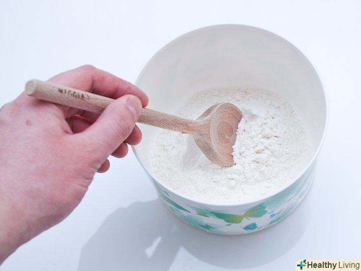 Змішайте сухі інгредієнти.змішайте всю пшеничне борошно, універсальне борошно і сіль у великій мисці, помішуючи їх дерев'яною ложкою, поки все рівномірно не змішається.