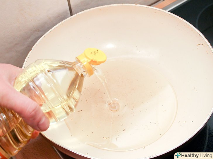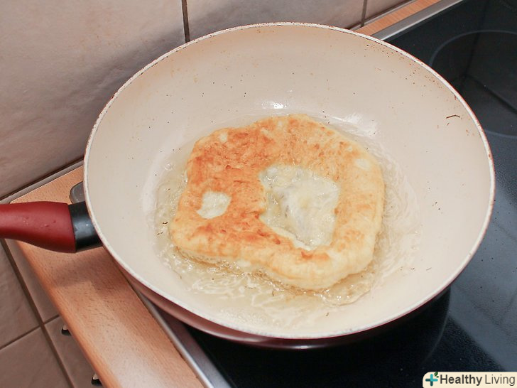 Нагрійте масло в глибокій сковороді.Налийте 2.5 см. масла в глибоку, з товстим дном неглибоку сковороду. Нагрійте її на плиті, на високій температурі.- Масло повинно досягати температури 190 °C, перш ніж перейти до наступного кроку. Якщо у вас немає безпечного термометра для їжі, що використовується для перевірки температури масла, перевірте масло, зануривши в нього невеликий шматочок тесту. Якщо тісто поступово піднімається на поверхню масла, масло досить гаряче.