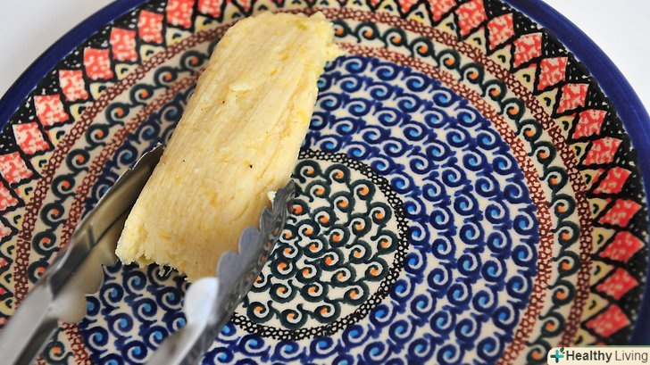 Обережно зніміть обгортку.коли ви готуєте мексиканську їжу, то тісто має бути готовим, а начинка – теплою.- Якщо тісто м'яке і кашоподібне, перемотайте акуратно тамале і покладіть назад в каструлю.
