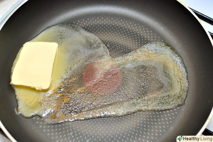 Розігрійте рослинне або топлене масло.покладіть 4 столові ложки (60 грам) топленого масла у велику сковороду з товстим дном, ви також можете використовувати масло з середньою або високою точкою кипіння, наприклад, сафлорова олія. Нагрійте масло на середньому вогні.- Не використовуйте оливкову олію, вона почне горіти при такій температурі.[9]
