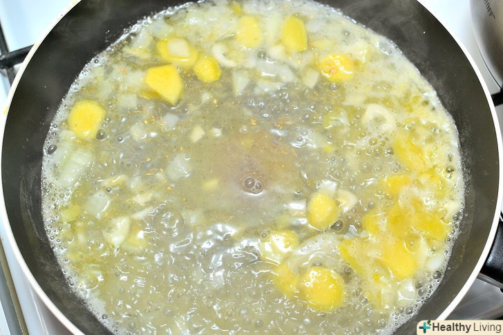 Додайте 1 склянку (240 мл) бульйону.додайте бульйон до смажених овочів. Накрийте сковороду кришкою і нагрівайте на слабкому вогні 5-6 хвилин, або до тих пір, поки рідина практично не википить.[10]