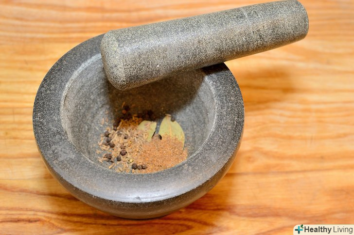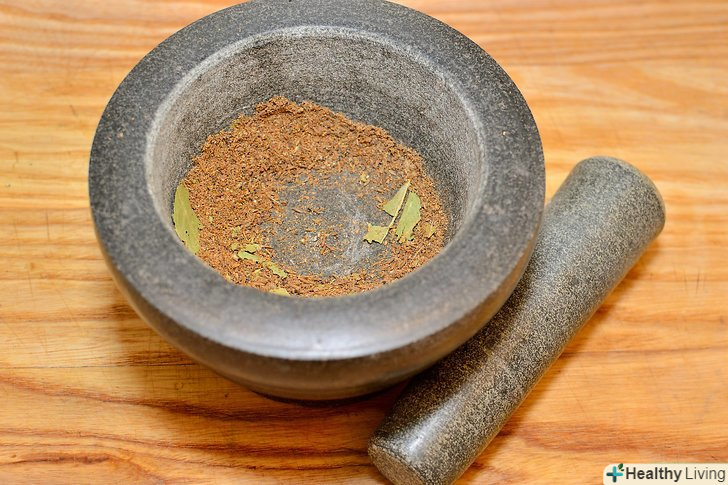 Сміливіть суміш спецій, не включаючи Не які інгредієнти.покладіть спеції в кухонний комбайн, млин для спеції або в ступку, змеліть їх до утворення порошку. Видаліть тверду паличку кориці. Якщо ви будете використовувати масала негайно, сміливіть і лавровий лист. Якщо ні, відкладіть лавровий лист на потім.- Деякі додають трохи мелених спецій чана дал( chana dal), ця суміш складається з меленої сочевиці і гороху. Але це не дуже актуально для м'ясних страв, наприклад, ніхарі, тому що м'ясні страви і так є відмінним джерелом білка.