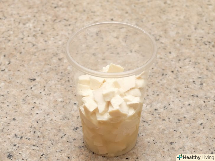 Наріжте тофу.тофу для тахо зазвичай нарізають на невеликі шматочки, такі, які помістяться в ложку разом з саго. Деяким людям більше подобається, коли тофу нарізають маленькими кубиками, іншим — коли тофу нарізаний довгими пластинами. Якщо ви не впевнені, як краще нарізати тофу, то наріжте його шматочками близько 2,5 см.[9]