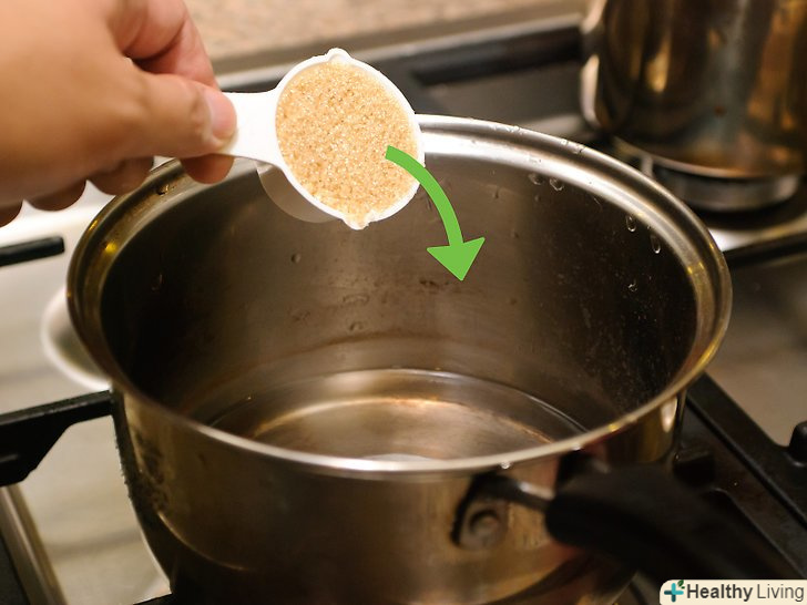 Доведіть воду з цукром до кипіння.Налийте 6 склянок (1,5 л) води у велику каструлю і додайте ¼ склянки (47,5 г) темно-коричневого цукру. Поставте каструлю на середній вогонь і доведіть до кипіння.[1]
