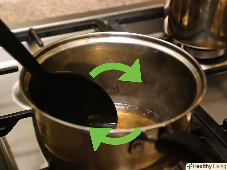 Доведіть суміш до кипіння.готуйте суміш на середньому вогні до тих пір, поки вона не закипить. Після цього зменшіть вогонь і дайте їй покипіти 1-2 хвилини. Цукор повинен розчинитися, а сироп — знайти однорідну текстуру. Періодично помішуйте сироп, щоб він не прилип до стінок каструлі.[7]